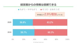 「経営層からの情報は信頼できる」で挙げた可能性と同じく、平時にくらべて従業員に対する説明機会が増えた可能性が挙げられます。会社としては従業員を不安にさせたままではなく今の状況を踏まえどのような評価をしているかを説明していくことで従業員からの信頼を得る機会を増やしていたのかもしれません。