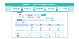 「Ailes+(エールプラス)」は、ITの知識や産業保健への深い理解をお持ちでなくても使いこなせるよう、「何をしたらよいか」が直感的にわかるような設計になっています。たとえばカルテ機能では、従業員一人ひとりの「健康診断結果」、「再検査結果」「疲労蓄積度」「対応履歴」などが簡単なタブ切り替えで表示可能です。今まで紙媒体で保管していた記録なども、「データ保管」機能にアップロードすることでシステム内での閲覧から記録まで、一元管理がかないます。