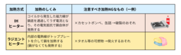 IHヒーターとラジエントヒーターのちがい