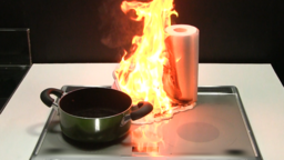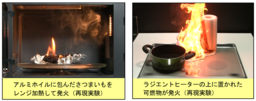 ラジエントヒーター上の可燃物が発火 (再現実験)