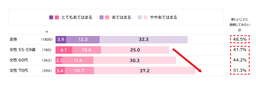 ・「孤独を感じることが多い」割合は、55~59歳男性で35.6%、55~59歳女性で37.2%と、いずれも55~59歳が最も高く、60代(26.5%)とは約10ポイント、70代(19.0%)とは約17ポイントの差がある。【図表1】