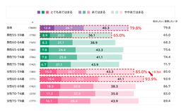 ・自分の人生に点数を付けるとしたら、「80-100点」と回答した割合は、55~59歳で23.6%、60代で32.8%、70代で39.2%と、年代とともに高くなる。【図表11】
