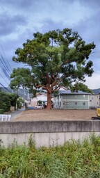 平野屋新田会所の千石蔵(米蔵)の北側には敷地面積約300坪の雑木林があり、高さ20メートル以上、幹回り約5メートルの大クスがひときわ目立っていました。