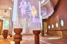 その他、ショパンの音楽のリズムに合わせて、ポーランド産の柳で作られた 140 本のブラシが動くインスタレーション「オーラ」や、家の繁栄を願う同国の伝統工芸「パヨンキ」に着想を得たアート作品「雲」、四季折々の植物 100 種以上を透明なガラス玉に収めたインスタレーションなど、ポーランドが誇る「自然と調和した文化」を象徴する、芸術的な展示が並びます。
