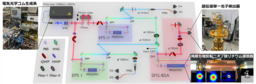 本研究では、NICTの持つ最先端技術(高速量子もつれ光源[3,4]、低ノイズ超伝導単一光子検出器[5,6]、高効率非線形光学結晶[7])を組み合わせて実験系を構築しました(図2参照)。