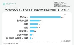 一方、「特になし」(特定のイベントなしで見直した)が57%と半数超を占め、必ずしもライフイベントが契機ではないケースも多いことがわかります。