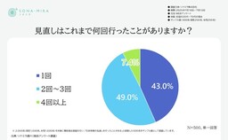 「これまでに保険の見直しを何回行ったことがあるか」では、「1回」が43.0%、「2~3回」が49%と続き、4回以上の経験者は7.4%にとどまりました。