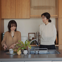 動画では、モデルで染織作家の下道千晶さんが、積水ハウスに住まわれて5年になる花さんのお宅を訪れます。施主の花さんが住まいづくりで大切にしたのは、「子どもが自由にのびのび暮らせる家」。賃貸住まいの頃に元気に過ごす子どもたちの生活音が気になったことから、家づくりを決意したそうです。空間には天井や床、壁などに木や石の素材を取り入れることで、家の中にいても自然を感じられるような工夫があふれ、子どもたちもはだしで床や畳をのびのびと住まいを楽しんでいます。