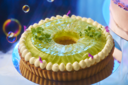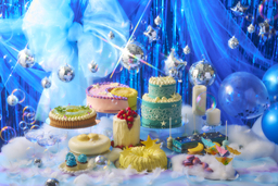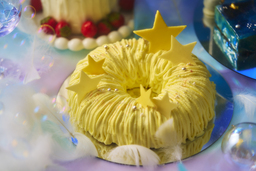レモンジュースを注ぐと色が変わる仕掛けが施され、シャンパンタワーで提供。まるで本当に天使たちが星屑で作ったスイーツを食べられるような体験をお届けします。