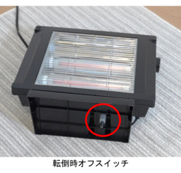 転倒時オフ機能(※10)は、地震で製品が転倒した際やぶつかって製品が倒れてしまった際に、ヒーターの加熱をとめる安全機能です。