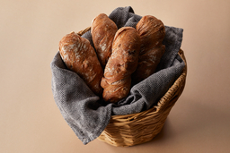 赤ワインで仕込んだパン生地に、赤ワインに漬けたやわらかいサラミと香ばしいくるみを練り込みました。ひと口噛むと、ワインの芳醇な香りと熟成したサラミの旨みが口いっぱいに広がり、くるみの食感が絶妙なアクセントに。チーズや赤ワインとの相性が格別な一品です。