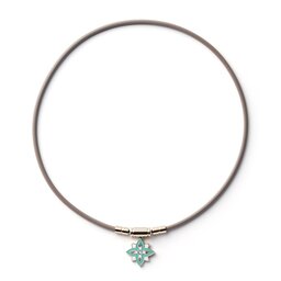 やわらかく肌になじむビスキュイカラーと、爽やかに澄むペパーミントブルー。大人の装いにそっと彩りを添える2つのカラーバリエーションです。トップセンター部にアクセントとしてラインストーンをあしらいました。3mm径のスリムタイプで軽い着け心地でありながら、ネックループ全体に55ミリテスラの磁石が10mm間隔に配置されており、磁力が広範囲に影響し装着部位の血行を改善、コリを緩和します。おしゃれを楽しみながら、首・肩のコリもケアできる女性にぴったりの磁気ネックレスです。
