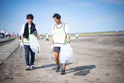 「JOYFIT 10Kラン」終了後は会場を使用させていただいた感謝の気持ちを込めて、九十九里の「ビーチクリーン」を実施しました。ビーチクリーンは歩いてゴミを拾うことにより、出場者のリカバリーもしてもらいたいと思いました。