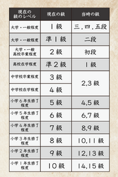 ※注1 当時の漢検では2級以下の隣り合う奇数・偶数の級(例:2級と3級、4級と5級)は同一の問題を使用しており、得点率によって級位が決まる方式でした。