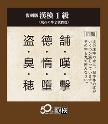 公益財団法人 日本漢字能力検定協会(代表理事 理事長:山崎信夫/所在地:京都市東山区/以下、当協会)は、日本漢字能力検定(以下、漢検)の開始50周年を記念し、段位のあった1992年以前の検定問題を再現した「復刻版漢検」を漢検ホームページにて公開しました。漢検が「五段〜15級」まであった時代の問題にどなたでも無料で挑戦いただけます。
