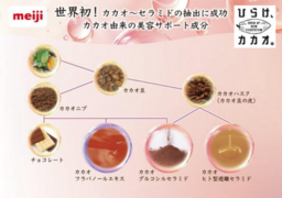 カカオの種皮より抽出した保湿成分で、 当社が世界で初めて素材化に成功しました。食品と化粧品両方への活用が期待でき、「カカオボーテ」ブランドとしてチョコレートやゼリーを販売するなど、今後も多様な展開を予定しています。