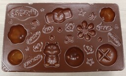 「カカオバイオプラスチック」は、当社と株式会社ヘミセルロースが共同開発した、カカオの種皮を配合した樹脂素材です。環境負荷の面では石油由来プラスチックと比較して、CO2排出量を30~60%削減することが可能で※2、物性の面では硬さと柔軟性を両立している点を特長としており、幅広い分野への展開が期待されています。すでに当社品「遊べる!学べる!サステナブルきのこの山」のトレーの材料に採用しており、玩具(株式会社タカラトミー「プラレール」)や筆記具(ゼブラ株式会社「サラサクリップ」)など※3にも使用されています。
