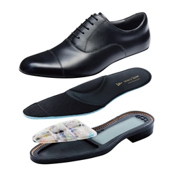 今回の商品は、セレモニーなどより洗練されたデザインが求められるシーンで活用したい、とのお客さまの声に応え企画しました。アッパー(甲被)は、艶やかな光沢感のあるソフト牛革を採用し、靴底は、オールラバーとし輪郭をしっかり出すなど外観の品格を追求しました。