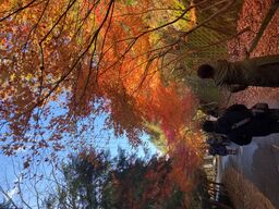 室町時代後期の山城跡で、登山道から山頂まで紅葉が点在。苔むす石垣や巨大な八丈岩に映える赤や黄の葉が、歴史と自然の対話を感じさせます。頂上からは湖南の町並みが望め、秋の散策にぴったりの静かな名所です。