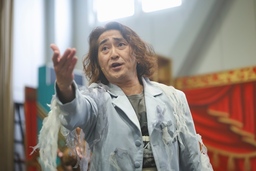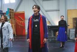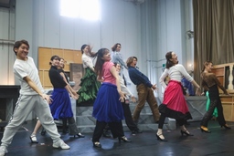 最初に公開されたシーンは、過去のクリスマスの精霊に導かれたスクルージが、青年時代の自分が愛する女性イザベラにプロポーズをする瞬間を見て、若き日の愛情をよみがえらせるシーン。欲ではなく、愛に満ちていたかつての自分を見つめるスクルージの心震える様子を繊細に演じる吉田栄作。土屋アンナの優しく温かな歌声もとても新鮮だ。続いては、時間旅行を終えたスクルージと、吉田要士が扮する親友マーレイが歌うクライマックスのシーンへ。ふたりの絆を感じさせる豊かな歌声が稽古場に響いた。そして全キャストがクリスマスナンバーにのせて歌い踊る楽しいカーテンコールが披露された。