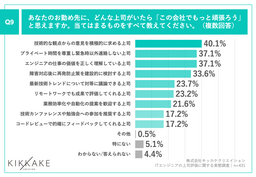 「Q9.あなたのお勤め先に、どんな上司がいたら「この会社でもっと頑張ろう」と思えますか。当てはまるものをすべて教えてください。(複数回答)」(n=431)と質問したところ、「技術的な観点からの意見を積極的に求める上司」が40.1%、「プライベート時間を尊重し緊急時以外連絡しない上司」が37.1%、「エンジニアの仕事の価値を正しく理解している上司」が37.1%という回答となりました。