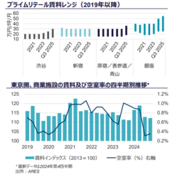 第3四半期の主要プライムエリアの上限賃料は前期から上昇。渋谷で+20.0%、心斎橋・御堂筋 で+14.3%、表参道・青山・原宿で+12.5%、銀座で+10.0%を記録。全国のプライムエリアに幅 広く出店している大手の海外ラグジュアリーブランドの需要は引き続き減退傾向にある。一方で、一 部海外ブランド、特にアスレジャー系で、ブランド認知維持・向上を目的に、高額賃料の受容例も 見られた。このような事例は、既存物件の出店余地が限られているため、建築費上昇(2019年9 月から2025年9月まで累積の上昇幅約34%⁴) の影響をより受けている未竣工物件でも見られ ており、水面下で交渉されている賃料の一部は既存店舗の上限を上回る水準となっている。更に 銀座ではプライムエリア自体も、新規出店及び再契約によってプライムエリアの下限賃料以上で成 約した事例が増加したことによって、拡大が続いている。