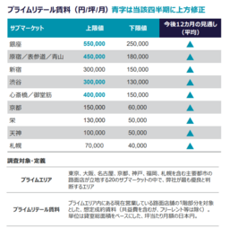 賃料:タイトな需給を背景に主要プライムエリアで上限切り上がり