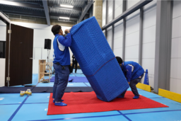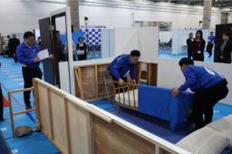 予選では、当社が多く取り扱う大型家具・家電を題材に、2.5人掛けソファの搬入・設置、テレビの設置・接続、およびお客さま対応を含む実技競技を実施。作業の正確性、安全性、お客さま対応力など細かな採点基準に基づいて評価を行い、実技および学科の総合得点上位4チームがファイナルステージへ進出しました。