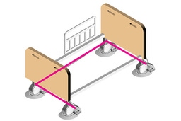 3方向どこからでも載せられるセンサー形状により、ベッドの車輪の向きに関係なく、斜めや真横からでもスムーズに設置が可能。居室の限られたスペースでも、無理なく設置・移動が可能です。