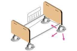 介護ベッドに設置された荷重センサーが、ベッド上の荷重変化を正確かつ迅速に検知し、介護従事者のPCやスマートフォンへ通知することで、転倒・転落の未然防止に貢献、かつ遠隔での見守りを可能にします。