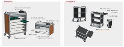 サカセは、医療機関向けのオーダーメイドカートやキャビネット、ラックの設計・製造で培った経験を活かし、宿泊施設ごとに異なるサイズ、機能、デザインなどの要望を具体的に伺い、作業効率が良くブランドイメージにも調和する高機能・高品質なカートを提供します。