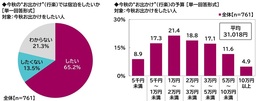 今秋お出かけをしたい人(761名)に、今秋の“お出かけ”(行楽)では宿泊をしたいか聞いたところ、「したい」は65.2%、「したくない」は13.5%と、“宿泊派”が多い結果となりました。