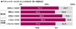「アウトレットモールに行ったことがある」73%、パパ・ママでは87%