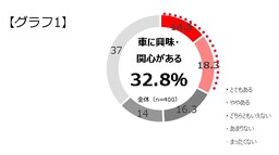20代男女400人に自動車に対する価値観や、走りに対する意識について調査したところ、「車に興味・関心がある」人はわずか32.8%。