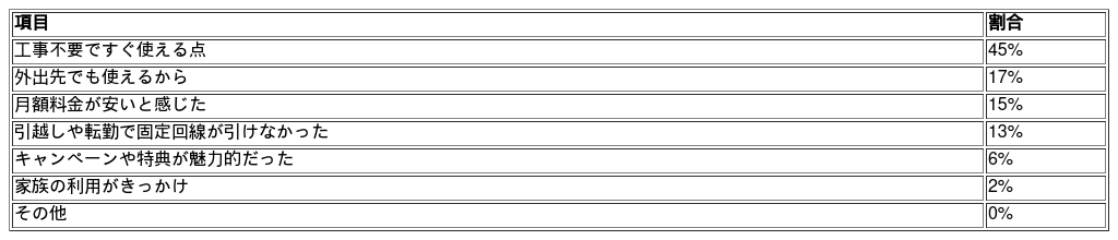 「自分は在宅で仕事をしているので、平日昼間の利用が多いため大きな不便は感じていないが、それでもやっと仕事を終えて、さあゆっくりネットで動画ほ見ようというタイミングで再生が止まったり、低画質モードに切り替わるとがっかりする。ただし他社と違いデータ容量制限を設けていないのは良い。」 などの通信品質の安定性向上を求める声もあがりました。