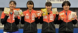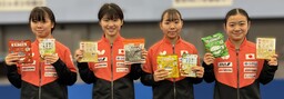 「ニッポンの食」を手に笑顔の卓球日本代表選手(U-15)