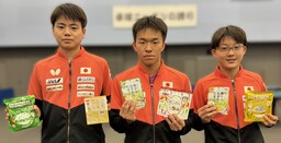 「ニッポンの食」を手に笑顔の卓球日本代表選手(U-19)