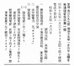 図1 標準電波発射を伝える官報(1940年)