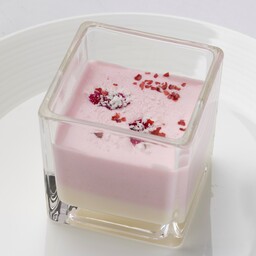 ホワイトチョコレートクリームとビーツのスープが美しい層をなした、甘味と塩味が調和する冷製スープです。仕上げに、ピンクペッパーとホワイトチョコレートをトッピングしました。