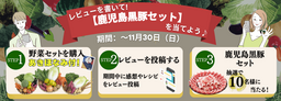 対象の野菜セットを購入し、レビューを投稿すると抽選で10名様に鹿児島黒豚セットが当たる