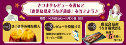 対象のさつまいもを購入し、レビューを投稿すると抽選で5名様に鹿児島県産うなぎ蒲焼が当たる