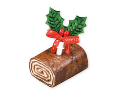 加えて、フランス語で「クリスマスの薪」を意味する、丸太の形をしたフランスの伝統的なケーキ「ブッシュドノエル」が新登場(※)。一般的なロールケーキはスポンジ生地を使っていますが、こんにゃく粉を使用したクレープ生地にアレンジ。薪の色味は濃厚なチョコレートで再現し、もちっと柔らかな食感と濃厚な味わいを楽しめるクリスマスケーキに仕上げました。