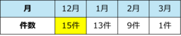 除雪機により人的被害があった事故38件について、「月別の事故発生件数」を表1に示します。冬のシーズンが始まる12月に最も事故が発生しています。使い始めに特に注意してください。
