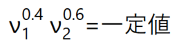 という曲線(緑点線)が定義線であると考えることができ、同様に赤線と定義線の交点として(ν1,ν2 )が決まると考えることで、両方のOptionを統一的に解釈することができます。さらに、Option 1はOption 2におけるν1,ν2 の重みがそれぞれ1, 0となった特殊な場合として包含されることも分かります。