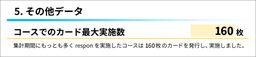 教員用の管理ページは、担当する授業ごとに分かれていて、教員は授業ごとにカードを作成・実施します。 全国でもっとも多く respon を実施した授業は 160枚 のカードを発行し、実施しました。[*3]