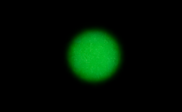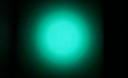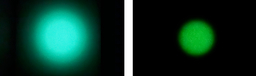 写真:『ルミナイト™』の発光状態(左)→『ルミナイト™』の光の拡散を抑えた発光状態(右)