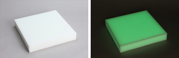 写真:『ルミナイト™』 明所での状態(左)→暗所での発光状態(右)