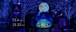 そして、今年の『青の洞窟 SHIBUYA』のテーマは『青の洞窟 THE SNOWMAN』。昨年の『青の洞窟 THE SNOW DOME』で好評を博した球体バルーン演出をさらに進化させ、雪だるま型の巨大バルーン『青の洞窟 THE SNOWMAN』が初登場します。このバルーンでは、雪や星、オーロラを思わせる幻想的な映像コンテンツが投影され、見る角度や時間帯によって異なる表情を見せるのが特徴です。