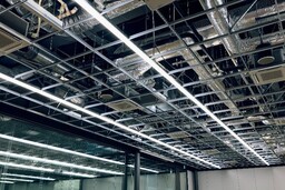 天井内を見学できる通路や、スケルトン天井の会議室を設けており、新入社員研修などで空調設備の実物を見ながら学べる空間としています。