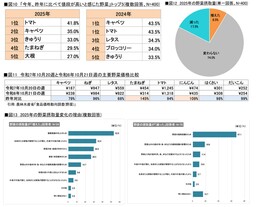 タキイ種苗株式会社(所在地:京都市下京区)は、2025年の年末を前に、400人の男女を対象に「野菜」に関する調査を実施いたしました。今年で11回目となる本調査では、今年ならではの「野菜」の世相を明らかにしました。「2025年度 野菜の総括」として、ご報告いたします。